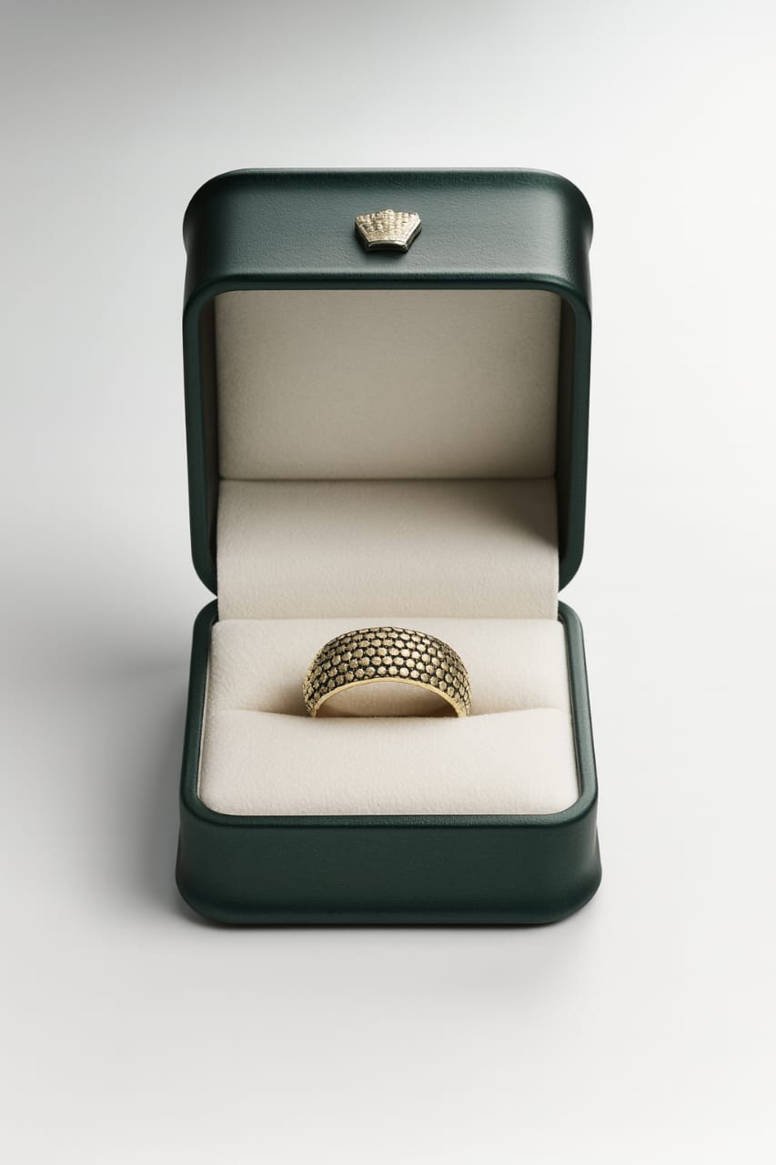 Gold-plated wide ring featuring an elegant honeycomb engraved design. A bold yet refined piece that adds a touch of sophistication to any outfit. Perfect for both daily wear and special occasions.